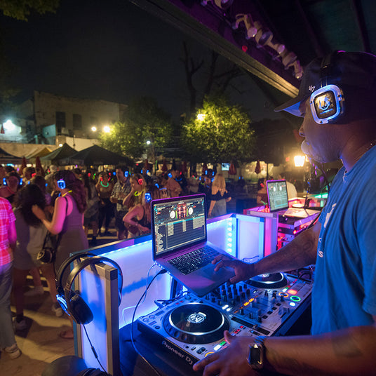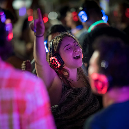 - Impossible Acoustics Made Perfect: Traditional speakers sound awful in spaces with hard surfaces like glass or tile. With headphones, we can host incredible sounding shows in aquariums, museums, art galleries, or on a windy beach—places where traditional audio would be a echoing disaster.